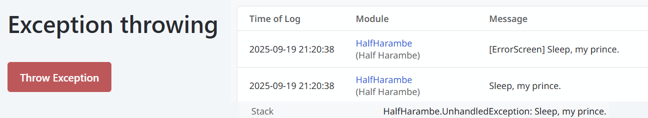 Based on C# documentation [2] we should be able to delete this OnException handler and still be able to compile the application, however when we throw an unhandled exception in our test app, we should be able to watch the application die. When I went to test this, I actually watched it die earlier than expected because I wasn't logged in and an unhandled security exception got thrown before I could ever hit my button that was supposed to throw the unhandled exception. After some maneuvering, though, I was able to get in and throw my own unhandled exception which did indeed kill the application.