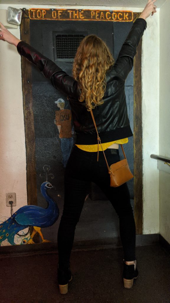 So hey, why not? Yes, they are the best french fries in the world. The burger I had was pretty good too! Not to mention the vast rainbow of beer they had on tap which I of course had to sample plenteously. We drew some pictures on the chalkboard table-top, shared the world's best fries, and exchanged stories about our college years. Next on the tour down memory lane, it was about the time of the night to hit the dance floor. We were off to the premier dive-bar-club-hybrid-thing in Corvallis: The Peacock.