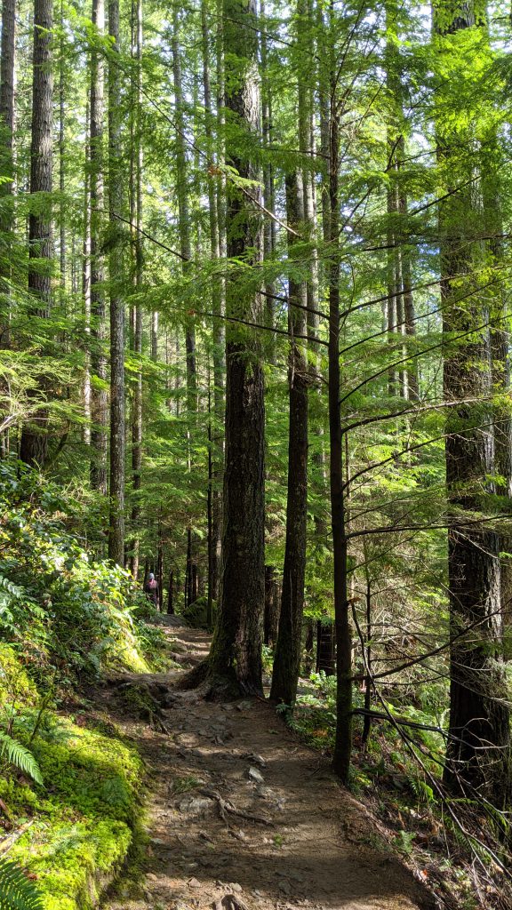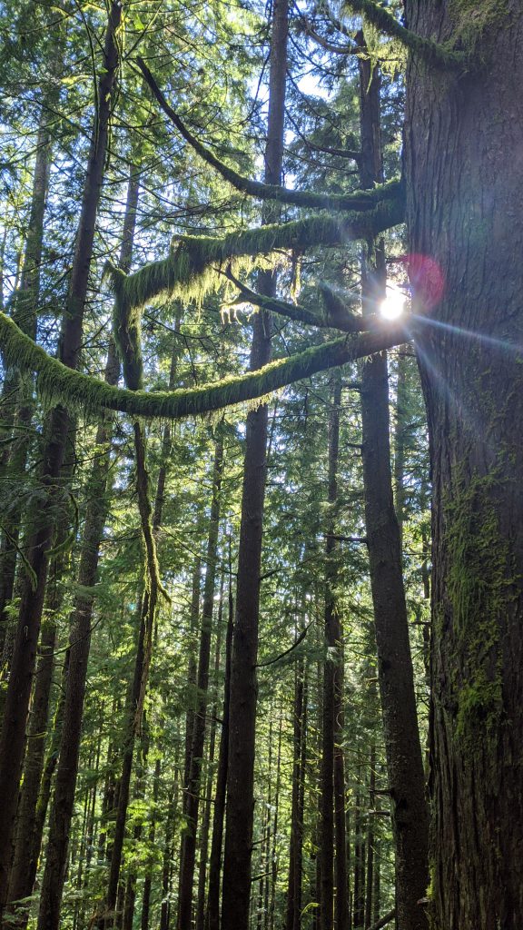 It was an absolutely perfect day! No rain, barely a cloud in the sky, and the classic mist of the Cascades fluttered down and across the stony, wooden faces of the hillsides around us. Towering trees, wise beyond our understanding, looked down at us with solemn interest as we traipsed up the mountainside through mud and babbling creeks about 2-3 inches deep we would occasionally need to ford.